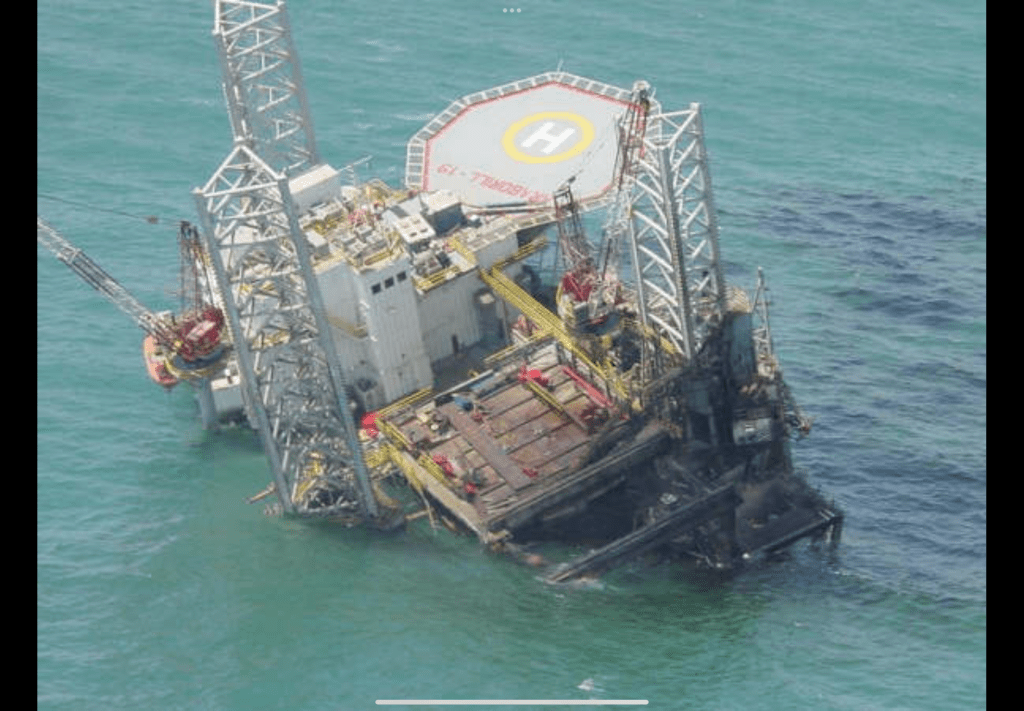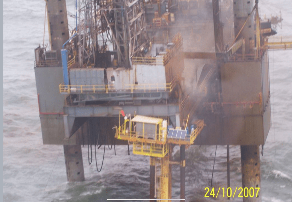 La empresa de seguridad industrial Vallen había abandonado la plataforma cuatro días antes porque se había agotado su orden de servicio y habían inhabilitado el sistema de relleno de los tanques de aire, conocido como «cascada». De la fuga brotaban borbotones de aceite que manchaban los cuartos de trabajo, el módulo habitacional y los botes salvavidas.