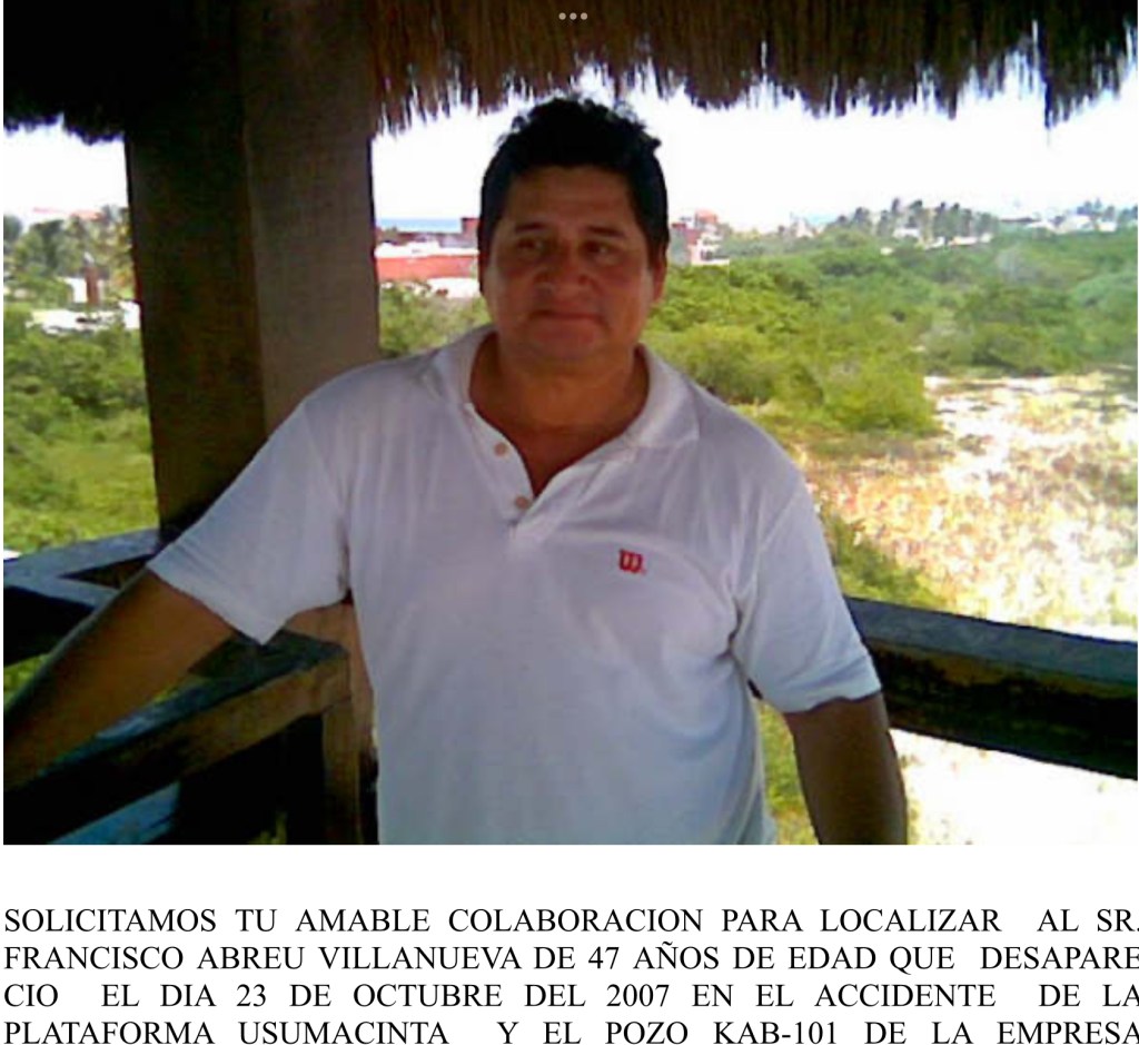 La noche del lunes 22 de octubre de 2007 Alfredo de la Cruz vio un reportaje sobre los accidentes en las plataformas petroleras de la Sonda de Campeche. Unos días antes, informó la televisión, había muerto un trabajador en el incendio de una barcaza. Alfredo, a quien lo conocían como Pensamiento desde hacía una década, se fue a dormir con la seguridad de que a él nunca le ocurriría un accidente de esa naturaleza.