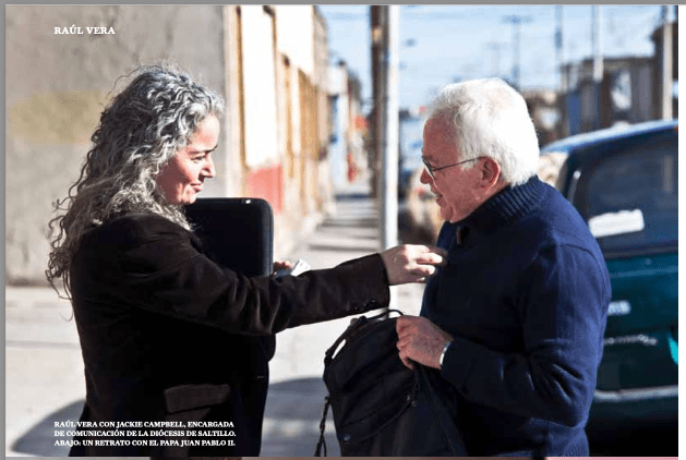 En 2001, ya instalado en Saltillo, a Raúl Vera le llegó la noticia de que aquella joven estaba desempleada y la mandó llamar. En 2004 la hizo jefa de prensa y ya para entonces Campbell era su compañera en la batalla de los derechos humanos. Con ella fue a Castaños a documentar las violaciones sexuales de militares contra las prostitutas de ese municipio. A través de sus contactos adquirió los conocimientos en tatuajes para desenmascarar el fraude del Niño Betito. Campbell lo acompañó en decenas de actos de solidaridad con grupos que denunciaban abusos. Y sobre ella recayó el hostigamiento: seguimientos de paramilitares, incursiones a su casa, cables de teléfono cortados, empleadas domésticas acosadas.