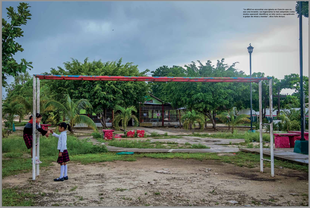 Primero apareció una cruz. Después vino la barda y un letrero que anunciaba la capilla del Señor de la Divina Misericordia. “Si los niños se cuelan a jugar, al rato llegan a sacarlos la gente de la iglesia”, me contó una chilanga que se mudó a esa colonia popular de Cancún.